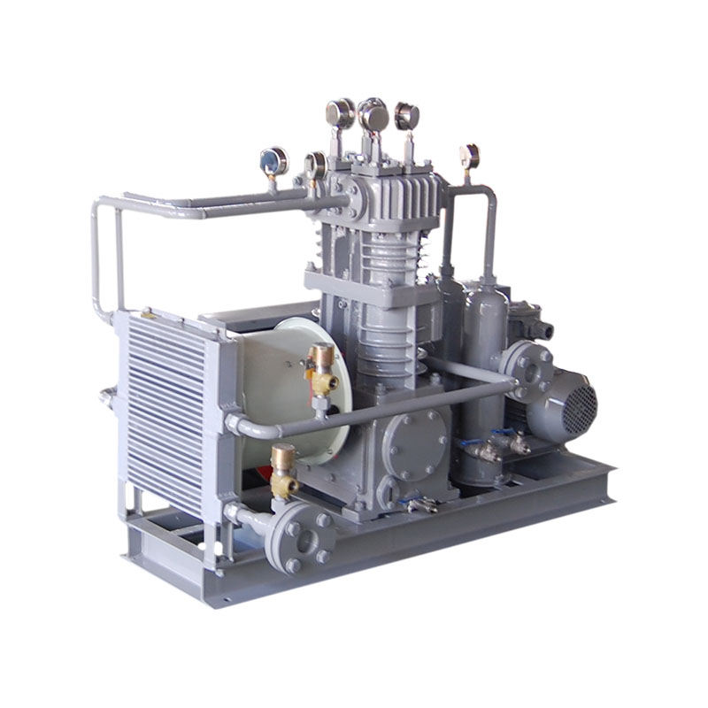環(huán)氧乙烷壓縮機(jī)是我公司新型產(chǎn)品,它集壓縮機(jī)、氣液分離器、安全閥冷卻器、電動(dòng)機(jī)等為一體,成一完整的機(jī)組。具有功能多、體積小、重量輕、功率小、運(yùn)行平穩(wěn)可靠等特點(diǎn),并有良好的安全性能。由于采用獨(dú)特的無油潤滑設(shè)計(jì),氣缸內(nèi)無需用油潤滑,因而不會(huì)對(duì)介質(zhì)造成污染,使被輸送物質(zhì)保持純凈。本機(jī)設(shè)計(jì)成機(jī)組型式,許多管線上的附件都安裝在機(jī)組上,省卻了氣液分離器、穩(wěn)壓罐、安全閥、進(jìn)氣過濾器等,減小了機(jī)房的面積,減少了操作維護(hù)工作量,節(jié)省了投資。